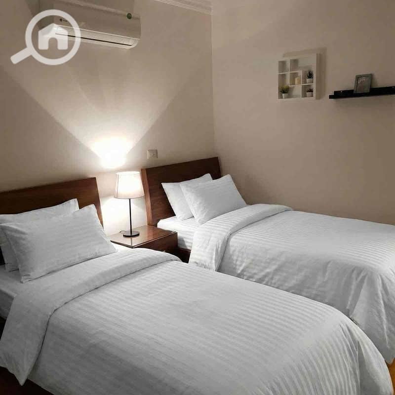 • الشقة مفروشة بالكامل بأثاث عصري وأنيق.