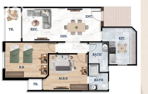 شقة 106م – غرفتين نوم