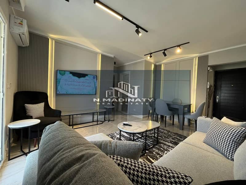 للقطه للايجار بأقل سعر مفروش في مدينتي أعلي تشطيب وفرش شقه 85 متر فيb12 بتشطيبات وفرش الترا سوبر للوكس مكيفه بالكامل بحري فرش وأجهزه جديده بال