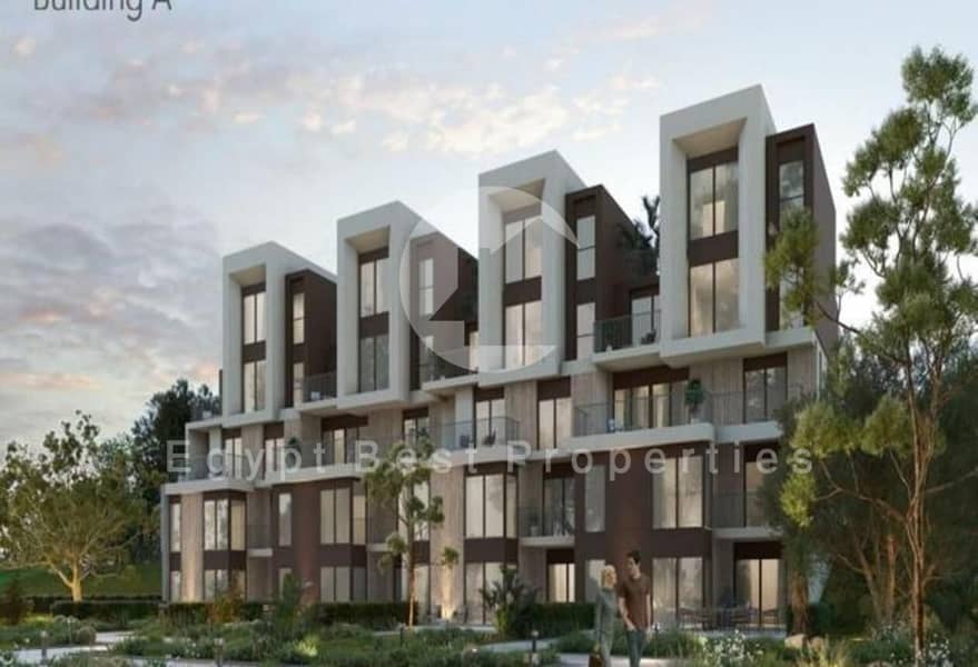 لوفت أرضي للبيع في سولانا ويست بموقع مميز، إطلالة لاندسكيب مع جنينة وتراس، تشطيب ألترا سوبر لوكس شامل التكييفات والمطبخ، استلام 2027.