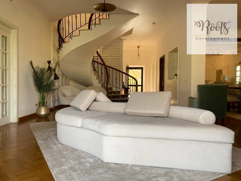 للايجار فيلا مفروشة بالكامل بالمطبخ والتكييفات بها حمام سباحة بموقع مميز فى كمبوند الربوة - الشيخ زايد. For Rent, VILLA , Al Rabwa Compound