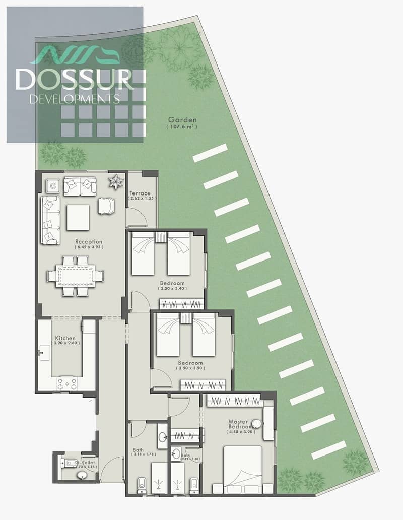 شقتك ١٥١متر ارضى مرتفع بجاردن ١١٦متر خاصه الحى الخامس موقع مميز قريب من محور بن زايد وكمبوند بالم هيلز وكمبوند مونتن فيو جارى الانشاء نادى خاص بالسكان