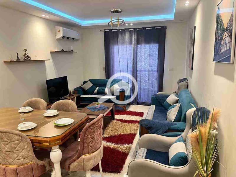 الشقة مفروشة و مكيفة بالكامل جاهزة للسكن الفوري تشطيبات خاصه بالكامل
