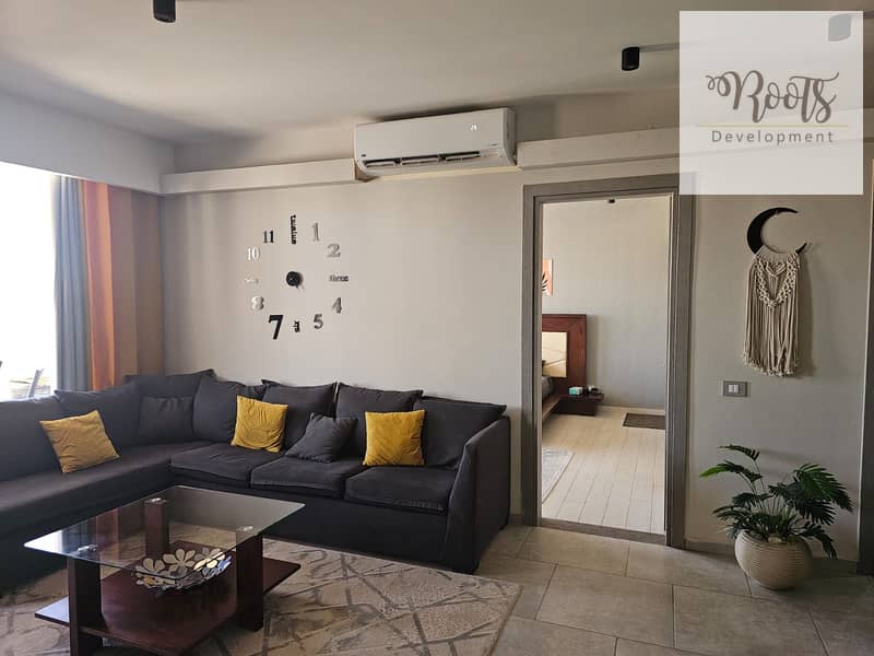 للبيع شالية يطل على حمام السباحة والبحر مفروش بالكامل فى المونت الجلالة – العين السخنة For Sale Fully Furnished Chalet in Monte Galala – Ain Sokhna