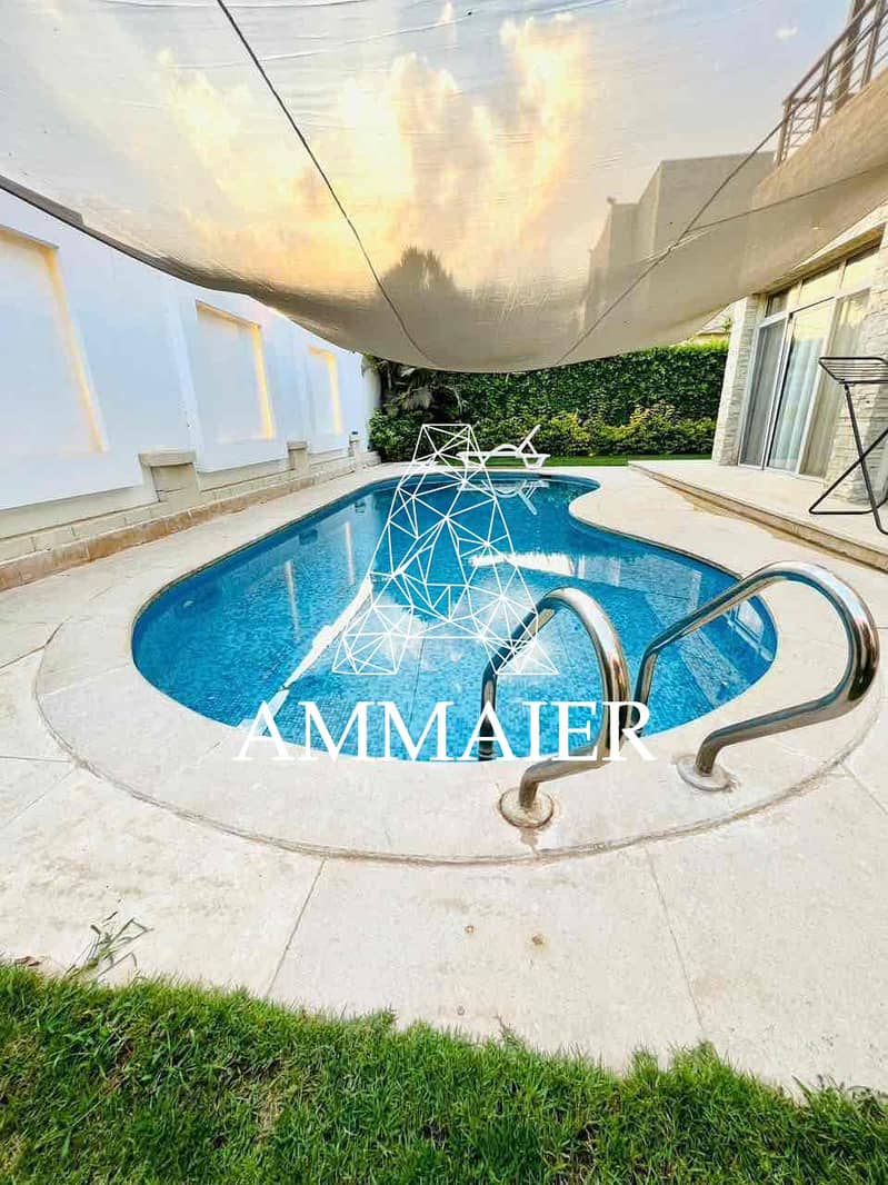 - حمام سباحة خاص محاط بمساحات جلوس