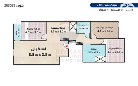 شقة للبيع 135م - سيدي بشر ( متفرع من ش جمال عبد الناصر )
