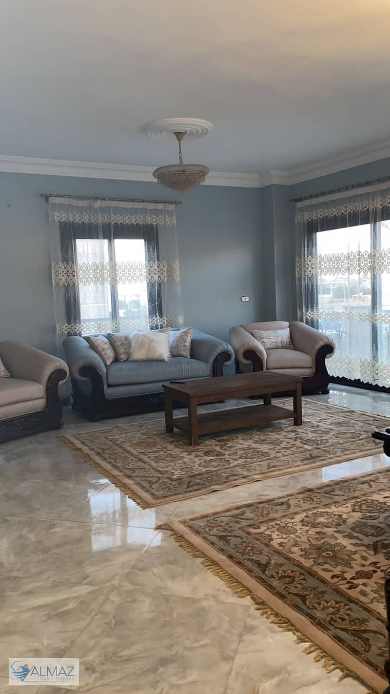 شقة مفروشة للايجار بالتكييفات في المجاورة السابعة بالتجمع الاول علي محور مصطفي كامل