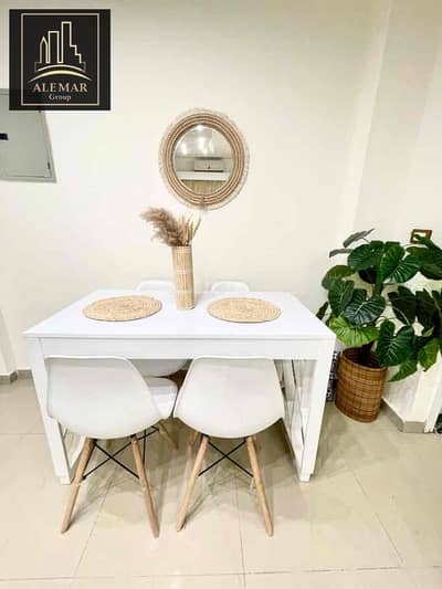 الوحدة بالدور الخامس، وتباع شاملة العفش والأجهزة بالكامل، جاهزة للاستلام دون أي مصاريف إضافية.