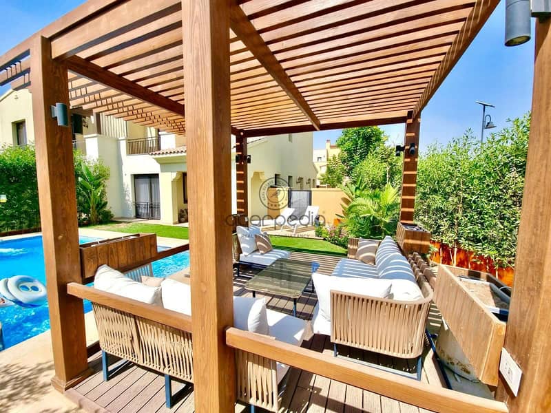 عيش رفاهية مطلقة في تاون هاوس زاوية بمساحة 277م² في كمبوند ميفيدا، مفروش بالكامل: