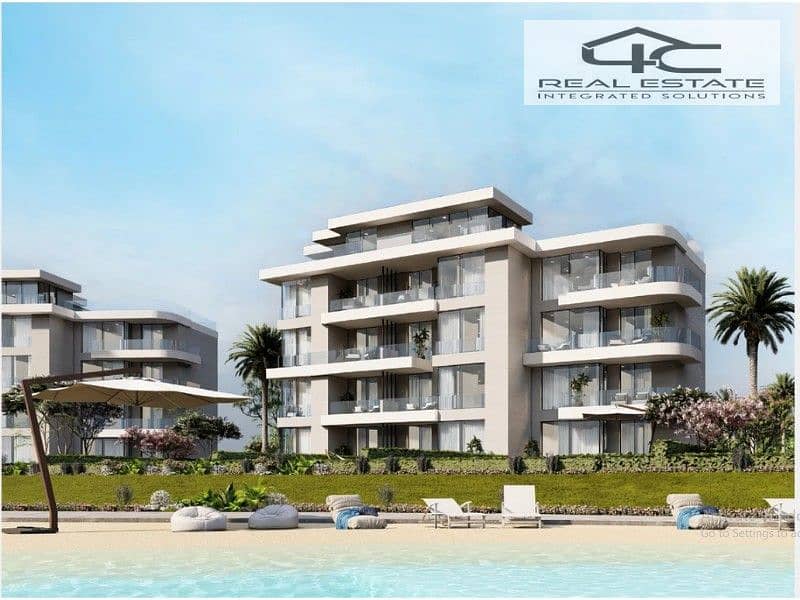 بيتش شاليه ١٣٥ متر للبيع بمقدم وأقساط. دبل فيوعلى البحر + لاجون، موقع مميز، في سي شور رأس الحكمة.