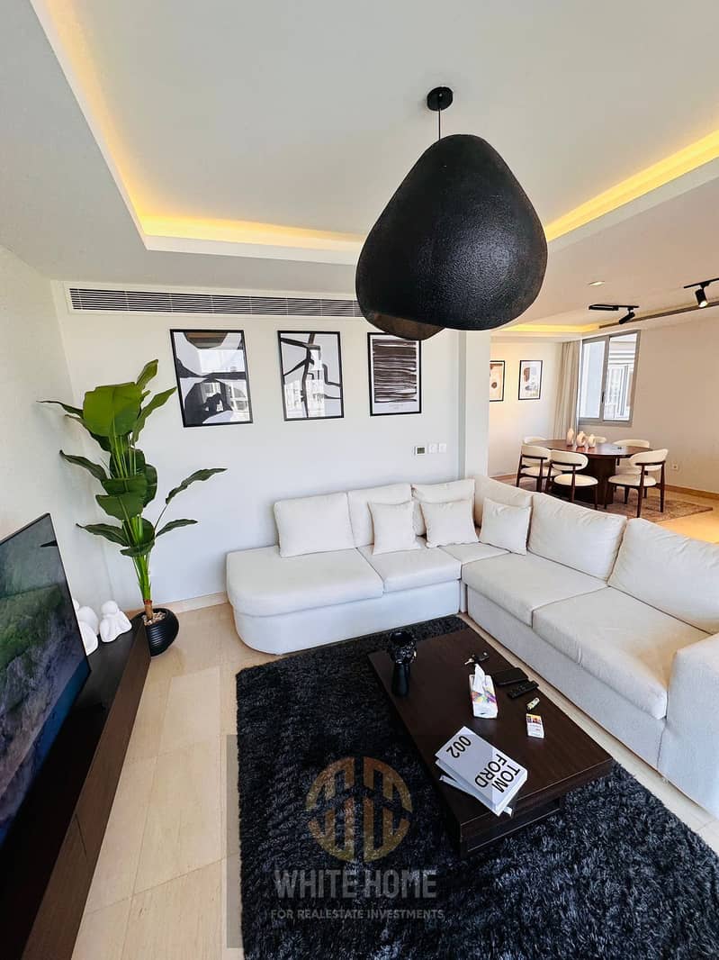 شقة للإيجار مفروشة بالكامل اول استخدام في كايرو فيستيڤال سيتي التجمع الخامس. كمبوند متكامل الخدمات. موقع قريب من المول و الچيم و المسبح. اطلالة مفتوحة