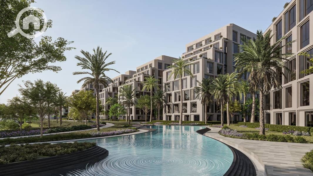 مساحة الشقة 100 متر، تتكون من غرفتين نوم، وتتميز بإطلالة مباشرة على اللاندسكيب والـ Water Features داخل الكمباوند، مع تصميمات عصرية وتشطيبات متميزة داخل مشروع سكني متكامل.