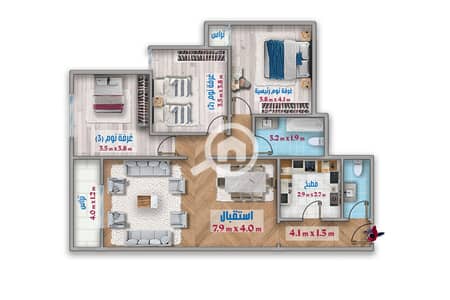 - 3 غرف ريسبشن 2 قطعة 2 حمام