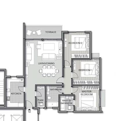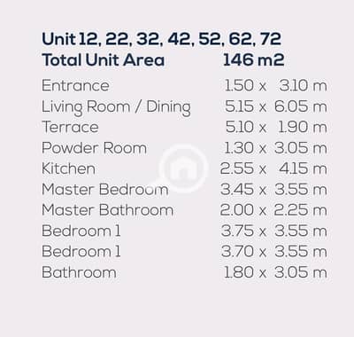مساحة 146 م ( 3 غرف و 3 حمامات )