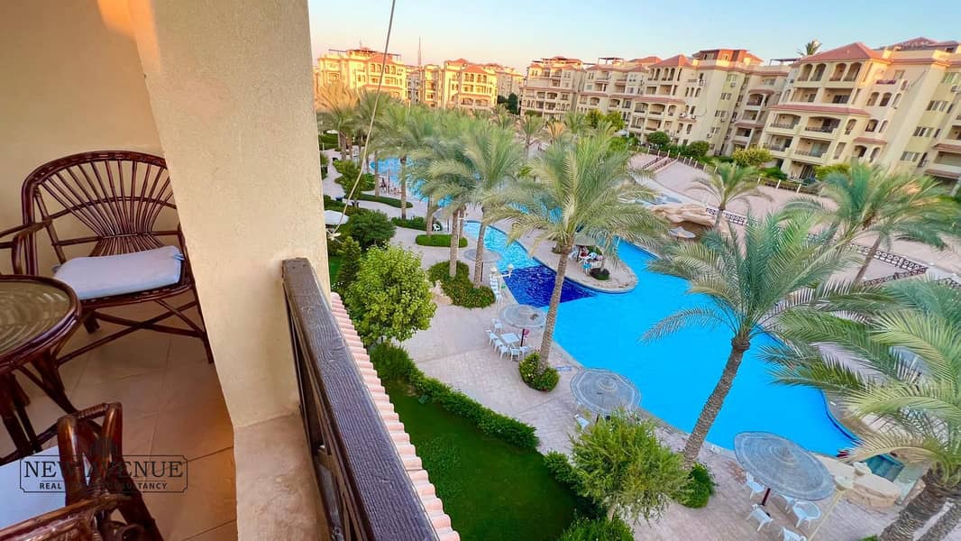 شاليه مفروش بالكامل يطل علي حمام سباحة
