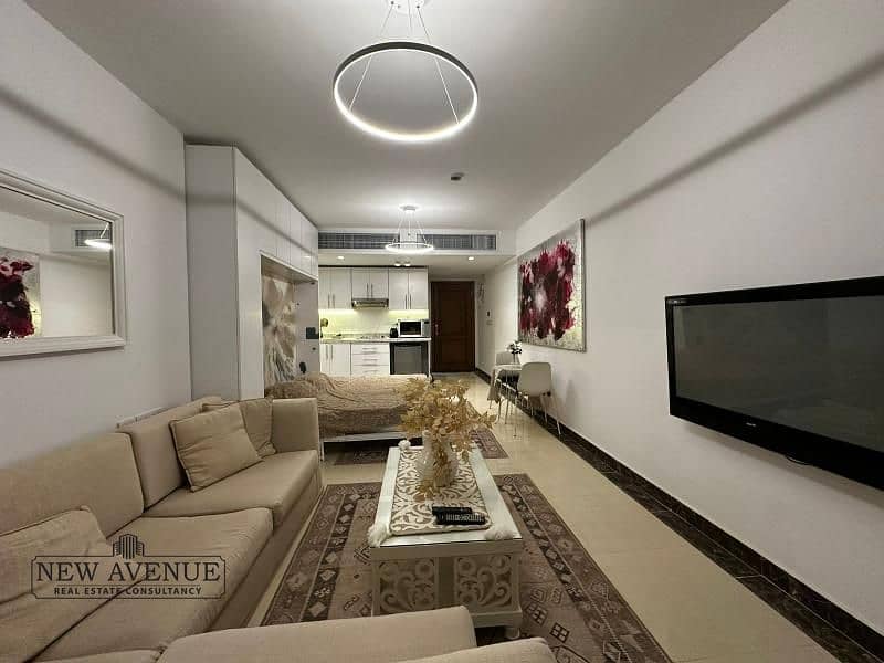 شقة في مشروع نيوم بالقاهرة الجديدة، بجوار الجامعة الأمريكية وأمريكان بلازا، تشطيب كامل ومفروشة بالأجهزة