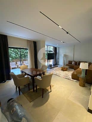 شقة مفروشة مودرن + حديقة للإيجار في كمبوند ليك فيو