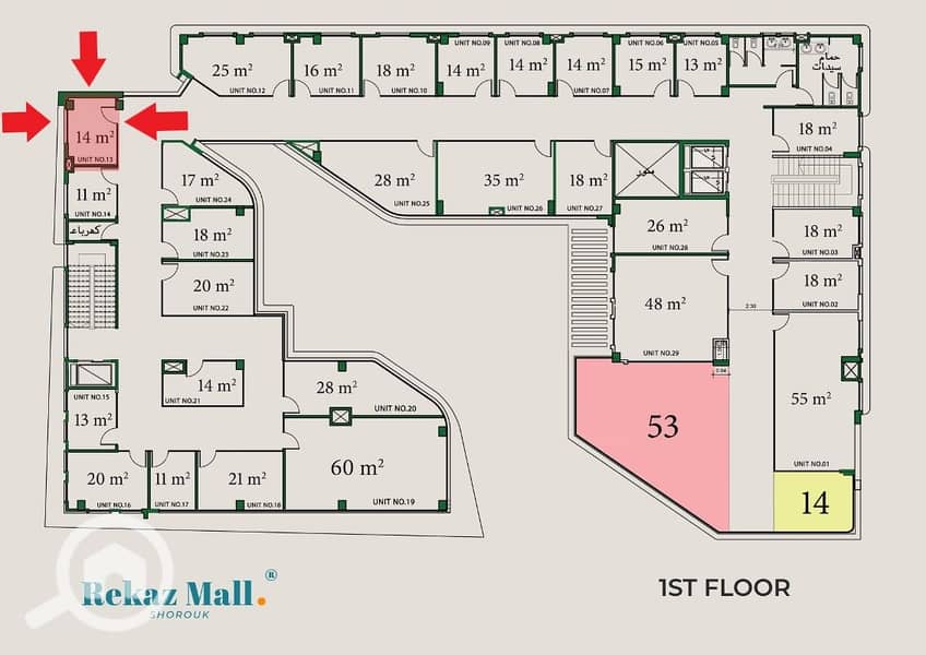 محل تجارى 14م للبيع دور اول ركاز مول مدينة الشروق الشروق3 على محور جمال عبدالناصر