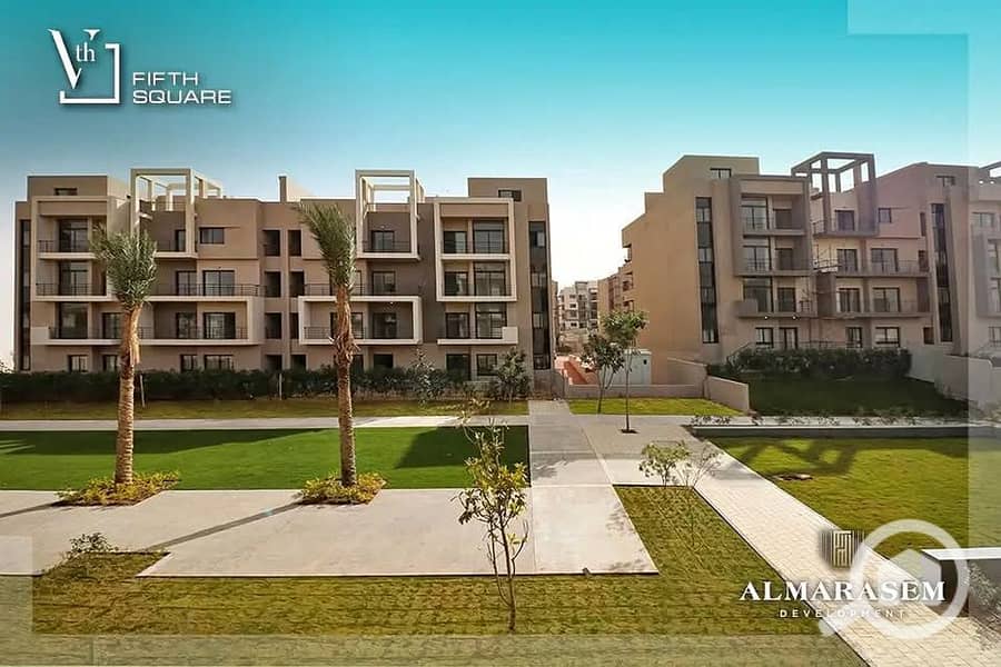 شقة للبيع استلام فوري متشطبة الترا سوبر لوكس بالتكيفات في كمبوند فيفتي سكوير من شركة المراسم في قلب التجمع الخامس و تكملت اقساط حتي 2032