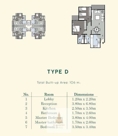 شقة بمساحة ١٠٦ متر مربع بتصميم عملي يلبي احتياجات السكن العصري، تتكون من غرفتين نوم وحمامين، مع مطبخ مستقل وريسيبشن واسع يسمح بتوزيع مثالي للأثاث ويوفر راحة وخصوصية لكل أفراد الأسرة، والوحدة بنظام نصف تشطيب لتمنحك حرية الاختيار في التشطيب النهائي.