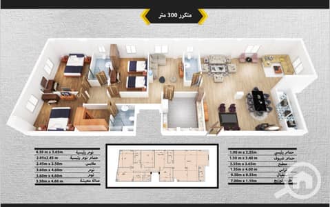 الدور الثالث يمين ٢٩٠ متر + ١٠ متر تراس