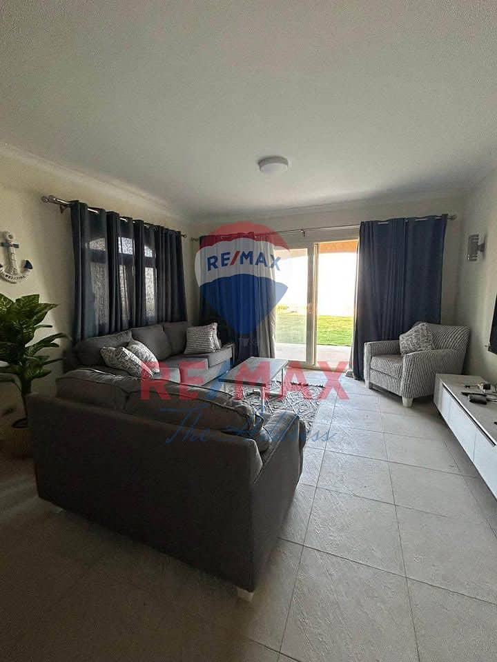 شاليه مفروش ارضي للبيع باقل من سعر الشركه دبل فيو سي فيو دايركت و فيو علي الحمام سباحه