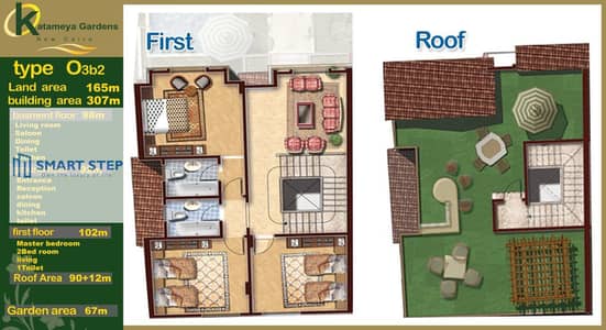النوع: تاون هاوس (أرضي + أول + ثاني + سطح)