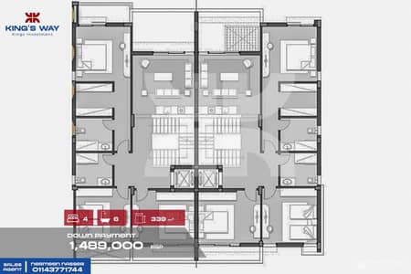 (4غرف نوم [منهم 2 غرفة ماستر]+ ريسبشن 4 قطع . +6حمام ومطبخ)
