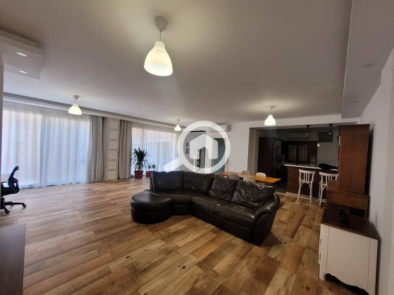 بيزمنت للإيجار المفروش بكمبوند ريفر ووك ، 180 متر ، بالتكييفات
