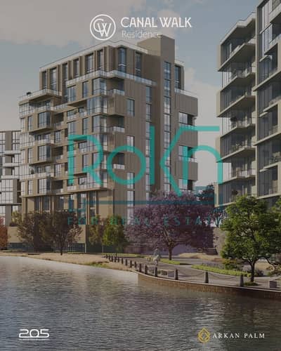 شقة للبيع في أركان بالم، رقم 205، كانال ووك، تشطيب كامل ومجهزة بتكييف هواء.