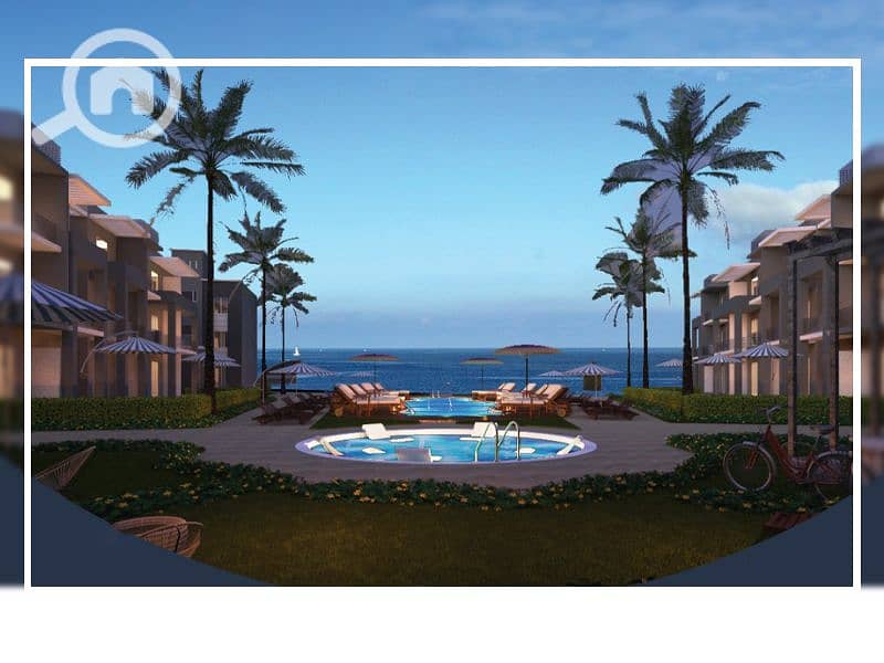 انتهز فرصة شاليه ارضي بجاردن متشطب بالفرش للبيع بمقدم 1,500,000 وبخصم 50% وبView بحر بانورامي بارقى منتجع على البحر في العين السخنة