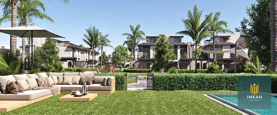 فيلا للبيع ( تاون هاوس ) 4 غرف فيو على جارنز فى كمبوند تلال ايست التجمع الخامس قسط على 10 سنين