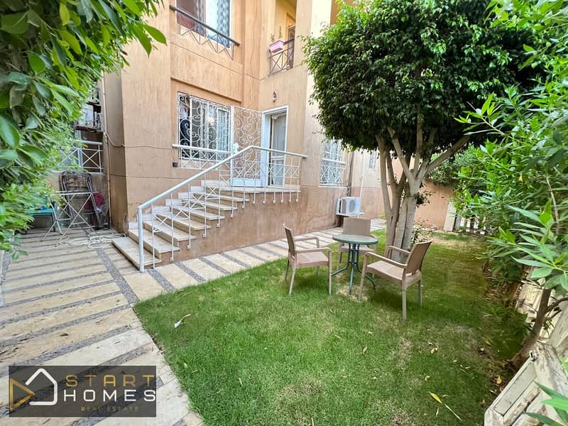 بجوار بوابه 6 شقه بحديقه للايجار مفروش في الرحاب أمام السوق