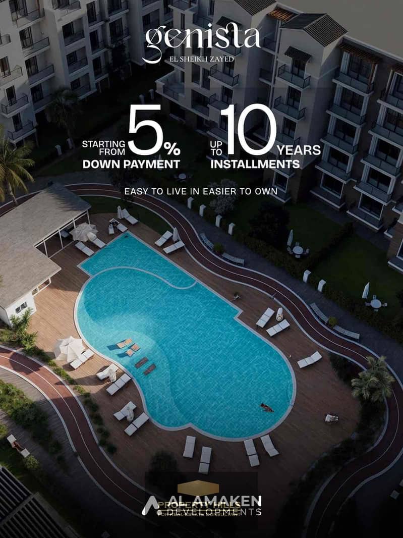 دوبلكس للبيع داخل مشروع Genista في قلب الشيخ زايد القديمة، بموقع مميز جدًا في منطقة سكنية قائمة ومطلوبة، مباشرة أمام كمبوند الربوة، ودقيقة واحدة من النادي الأهلي وقريب من الطريق الصحراوي.