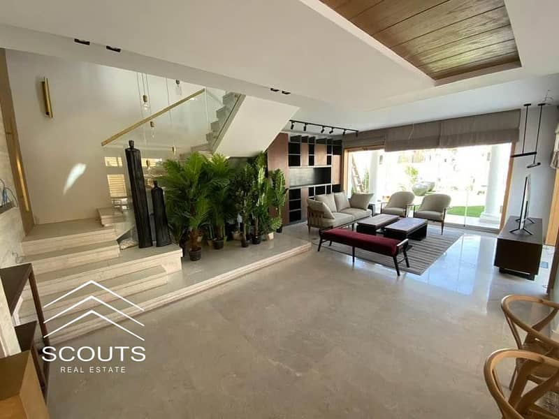 ( 5 غرف + 5 حمام + ليفنج رووم + تراس +ريسبشن قطعتين + جاردن فيو مميز غير مجروح )