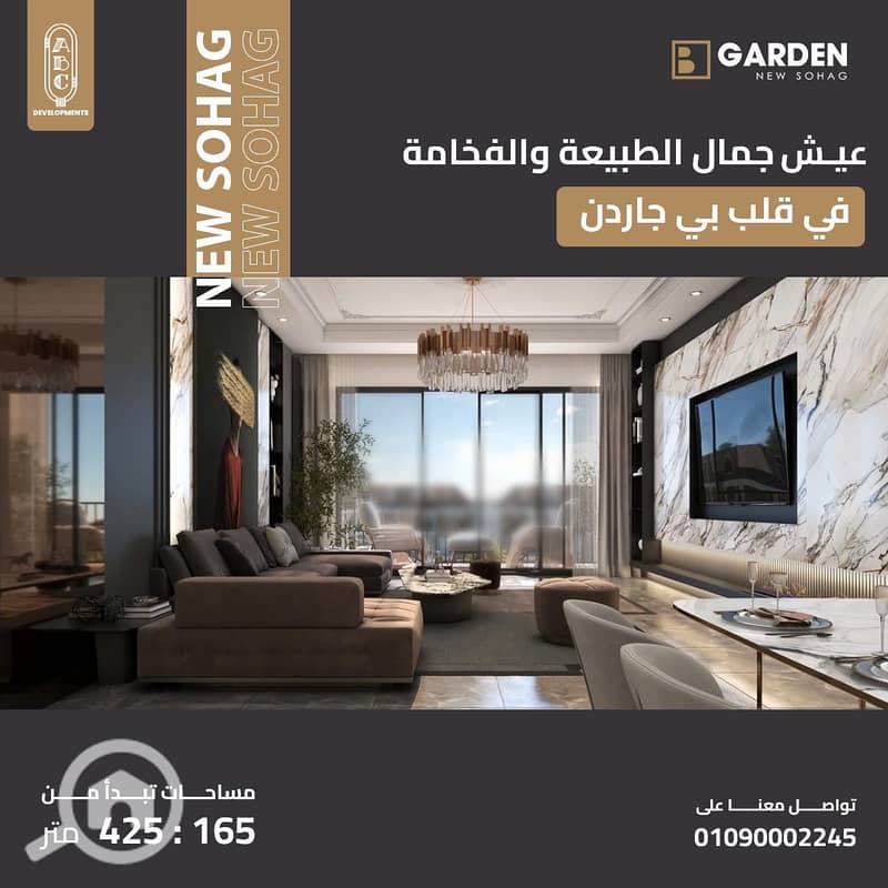 "استثمر في مستقبلك مع بي جاردن! فلا مطلة على مطار سوهاج الجديد، ومقدمات مميزة وخطط سداد حتى 8 سنوات. "