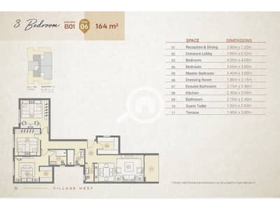 مساحة الشقة : 164م