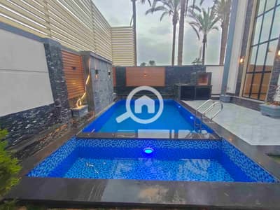 فيلا للبيع مسجلة في كينج مريوط بالاسكندريه شارع عمر المختار المساحه 375متر مساحة المباني الدور الارضي 150متر والدور الثاني 150متر والروف 100متر تتكون من دورين وروف و5غرف نوم ماستر ومطبخ طراز امريكي ورسبشن ولفنج وحمام سباحة وشوايه وحديقة وعداد كهرباء و2مياه تشطيب سوبر لوكس كامله المرافق ومسجلة نهائي وقريبا من جميع الخدمات