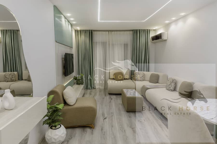 شقة معروضة حصرياً لدى شركة بلاك هورس العقارية ، تقع في منطقة راقية داخل مدينة الرحاب، بالقرب من السوق القديم وجميع الخدمات الأساسية.