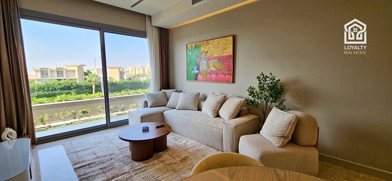 شقه للبيع بجاردن استلام فوري متشطبه بالتكيفات ومفروشه بالكامل في كومباوند الجازي التجمع القاهرة الجديدة