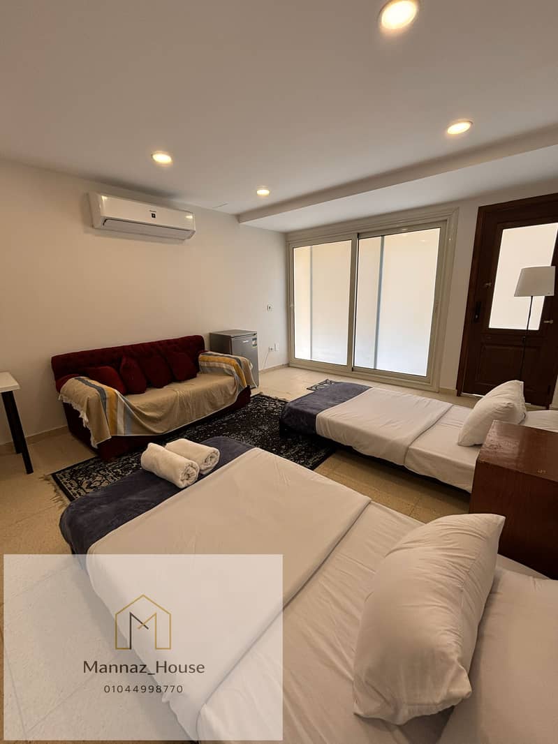 استوديو مفروش هادئ بمدخل خاص داخل كمبوند إيجلز بجانب أجورا مول – مناسب لطلبة الجامعة الأمريكية