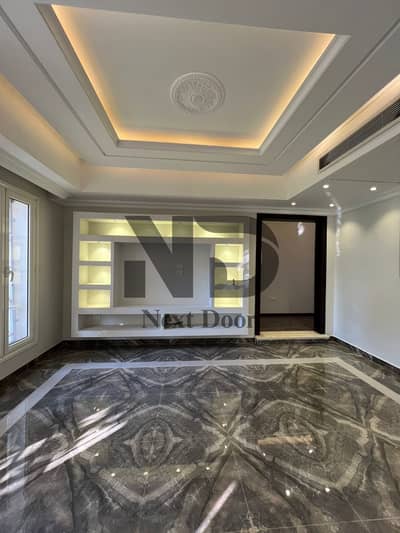 بجوار الجامعة الامريكية شقة بحديقة تشطيب فاخر بالتكييفات موقع مميز بالقرب من مطار القاهرة