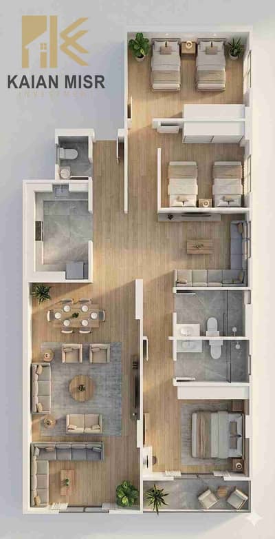 مقسمة إلى: ٣ غرف منهم غرفة ماستر - ٣ حمام - ليفنج روم