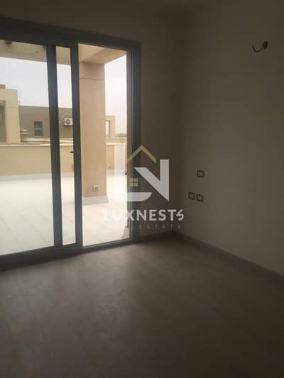 بنتهاوس للإيجار في كمبوند فيليج جيت على الدور الثالث والرابع مع روف خاص، تشطيب جيد ومزود بالمطبخ والتكييفات.