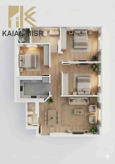 مقسمة إلى: ٣ غرف - ٢ حمام - رسيبشن قطعتين - مطبخ
