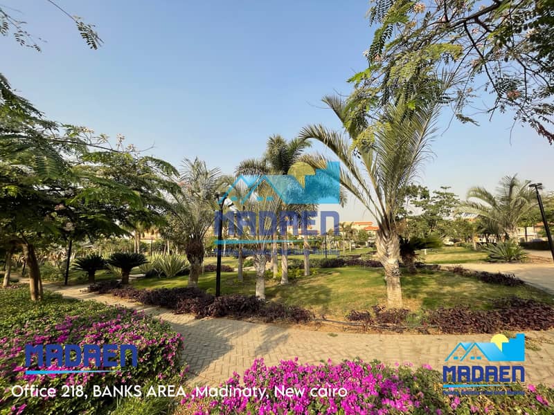 الفيو: إطلالة مفتوحة على "وايد جاردن" واسع جداً، مما يضمن خصوصية تامة وغير مجروحة نهائياً.