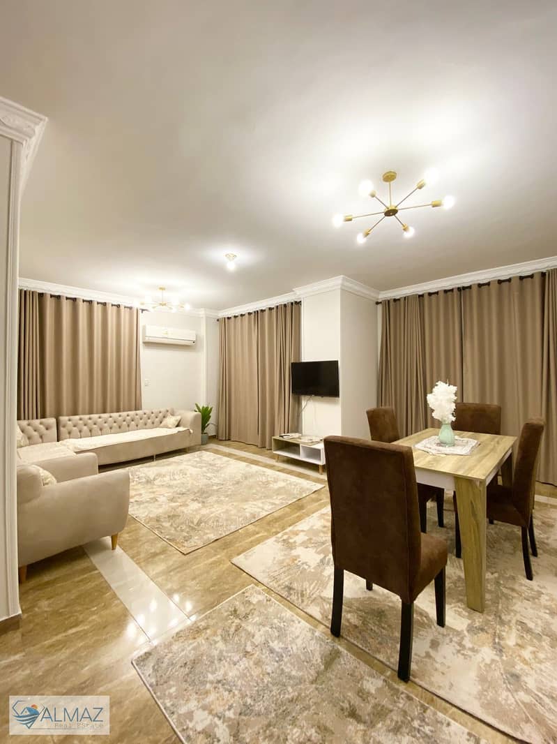 شقة مفروشة بمساحة ١٨٠ مترمكيفة بالكامل للايجار في كمبوند المستشارين في التجمع الخامس بالقرب من كونكورد بلازا و نادي الزهور والمدارس الدولية.