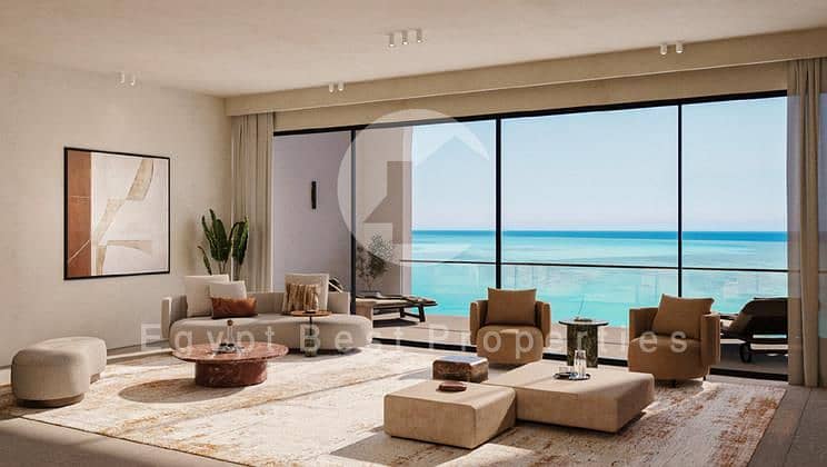 للبيع شاليه غرفتين نوم، باطلاله علي البحر و اللاجون | دفعة أولى 10%، أقساط على 7 سنوات