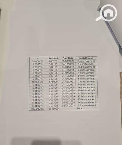 متبقي 11 قسط نصف سنوي (قيمة القسط 307,000)