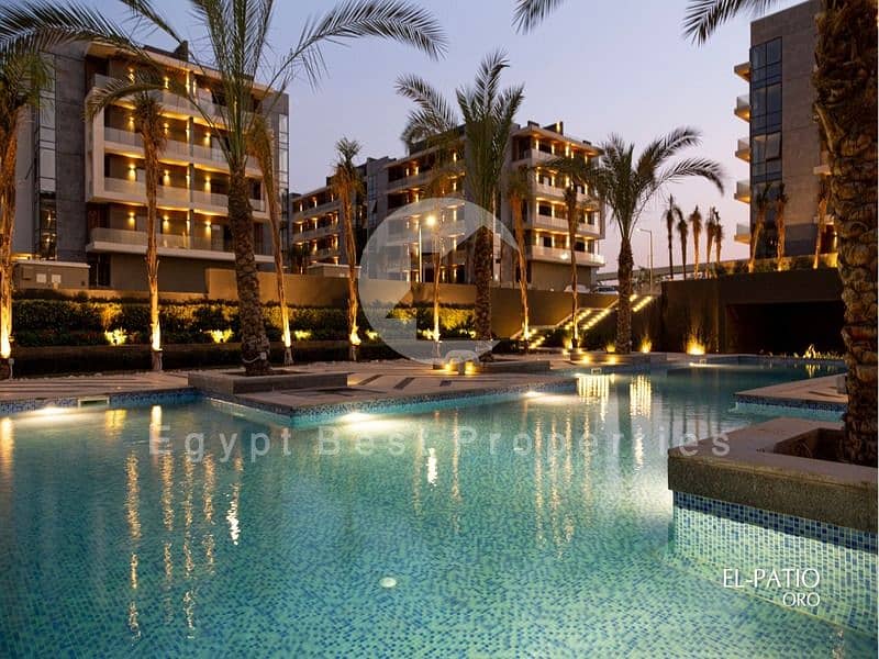 بسعر مميز جدا شقة غرفتين للبيع فيو مسبح ومسطحات مائية استلام فوري في كمباوند الباتيو اورو لافيستا التجمع الخامس